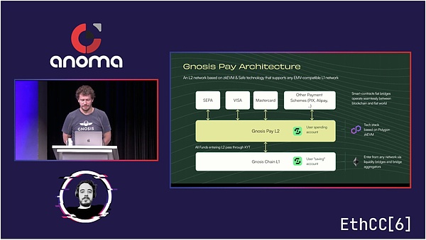 该技术方案一端绑定加密钱包,另一端打通银行系统、Visa、MasterCard和第三方支付,中间则专门构建一条基于 Polygon 的L2, 用于处理加密货币到传统金融之间的转换和支付。