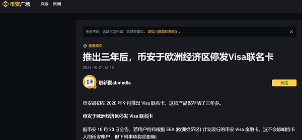 加密支付卡可能因为与银行合作不畅的原因而停止服务,用户如果不定期查阅邮件或者用卡,则可能会错过提现时间而造成损失;同时,随着监管的收紧和卡组织态度的转变,即使是强如币安这样的行业龙头,也有可能因此而暂停卡片发行。