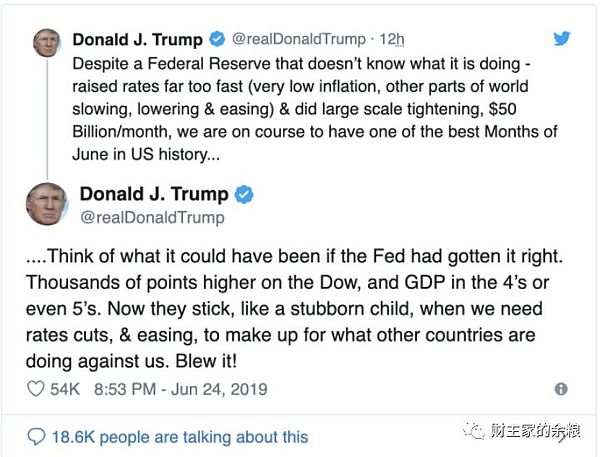 6月26日,特朗普在接受福克斯商业电视网采访时,再次批评鲍威尔没有降低利率,并且权威十足的宣称: