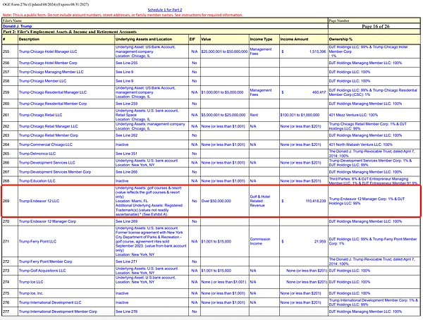 上周五,白宫政府道德办公室发布了特朗普的财务状况披露文件,也让我们得以窥见天宫的一角。在这份长达 234 页的文件中,一个横跨房地产、旅游业、传媒业以及加密货币的商业帝国赫然成型,