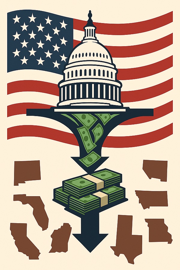 来看开头的“大而美法案”,该法案承诺改进联邦治理,同时扩大国防、边境、基建及产业支出,并延续大规模减税,取消新能源补贴,削减福利。然而,法案未能改变上述的结构性矛盾,即联邦政府想要强化自身的职责,但相应的经济成本也必然高昂。其中,税收与支出条款明显强化联邦职能,而州在医疗、福利、清洁能源领域仍掌有执行裁量,政策效果取决于地方合作度,难以保证统一落地。在不触动分权结构的前提下,联邦收入大幅缩水,新增国防与边境支出则进一步推高赤字。