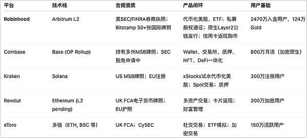 行业竞争亦日趋激烈。Coinbase借助Base Layer2构建了完整生态,整合钱包、交易、质押及DeFi协议,拥有庞大的加密原生用户群体和活跃的开发者社区;Kraken的xStocks项目在Solana链上试水少量美股代币,虽流动性尚浅,却因极低延迟吸引高频交易者;欧洲市场的Revolut与eToro则通过“金融超市”和“社交交易+ETF模拟”模式深耕,加密交易与投资教育并重,成为Robinhood在全方位投资服务上的强劲对手。面对多维竞争,Robinhood不仅要在技术上保持领先,更需通过合规与用户体验筑起难以逾越的壁垒。