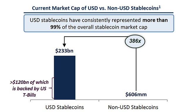 图1:目前美元稳定币 vs 非美元稳定币的市场规模对比
