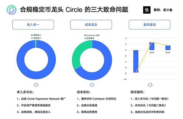为了减缓盈利的波动,Circle要做的其实和第一个问题和第二个问题相关,一方面是收入多元化以降低利率依赖,另一方面是成本优化以稳定利润率。