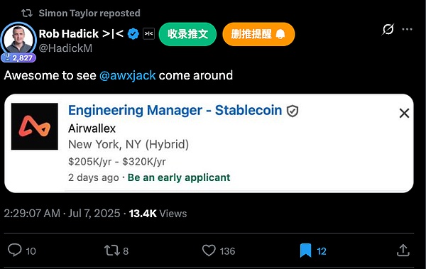 这也是为什么我们在早些时间看到,Airwallex,这一Web2企业跨境转账巨头,实实在在的感受到了,稳定币跨境支付企业的威胁,在推特上发表了防御性的言论,但是确在其招聘网站上公开招募稳定币的开发者。