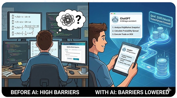 在过去,套利确实存在不低的门槛。但现在有AI了,我尝试深入使用 AI 寻找套利机会后,非常清晰:曾经阻挡普通人的那些高墙正在被 AI 迅速抹平。