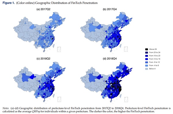 2025年11月,MS发布了“Financial Inclusion via FinTech: From Digital Payments to Platform Investments”一文。该文章研究了金融科技时代家庭金融的情况,在这个时代,数字支付通过全能超级应用程序与各种金融服务相融合。该文章假设,通过数字支付增加金融科技的采用能够降低参与金融市场相关的非货币成本(例如心理障碍)。研究发现,金融科技采用率越高,参与度越高,且在共同基金投资中的风险承担也越大。通过将距离蚂蚁集团的距离作为金融科技渗透率的工具变量,以及深圳二维码支付的外生渗透,该研究进一步提供了从数字支付到风险基金投资的因果证据。此外,金融科技的影响在那些原本受到更多限制、风险承受能力更强或生活在金融服务不足地区的个人中更为显著。