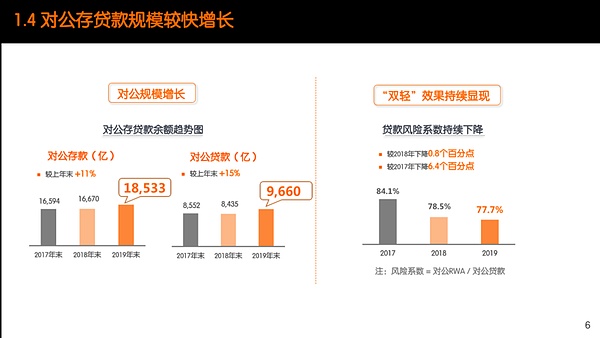 从对公存贷款规模来看,过去三年逐年增长,且贷款风险系数连年降低。