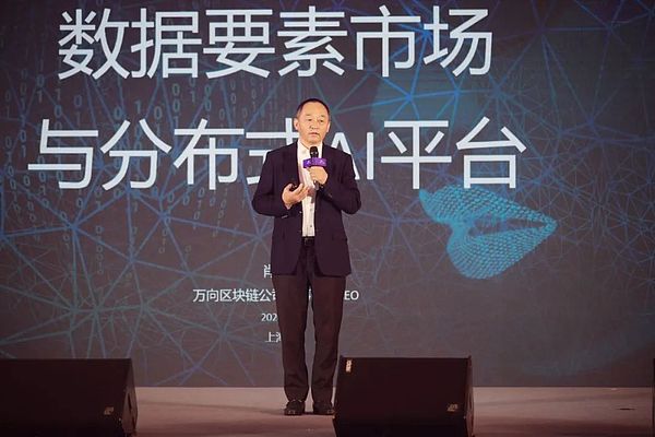 万向区块链董事长兼CEO肖风博士受邀出席论坛,并发表了题为《数据要素市场与分布式AI平台》的演讲。在演讲中,他分析了人类社会当前面临的技术性迁徙,以及区块链和人工智能在数据要素市场中的作用。