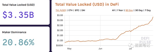 (DeFi锁定资产总量超33亿,SOURCE:DEFIPULSE)