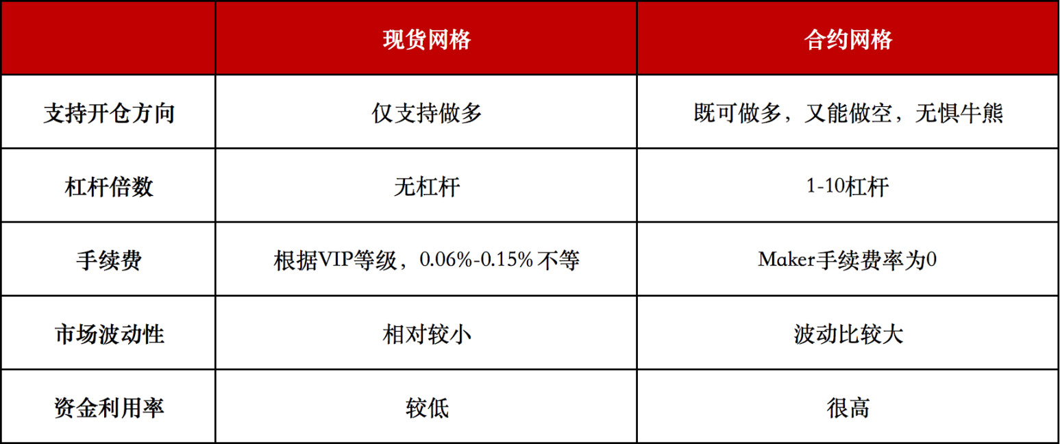 可以看出,合约网格克服了现货网格不支持做空,资金利用率低的问题,使合约网格在熊市中也能大放异彩。