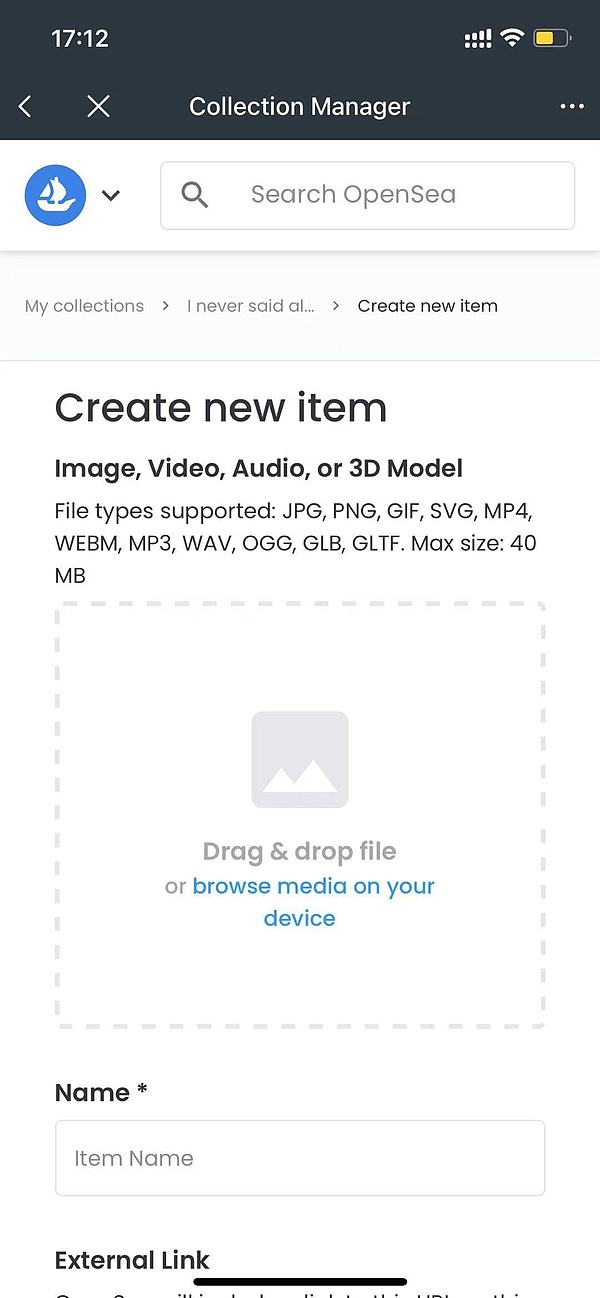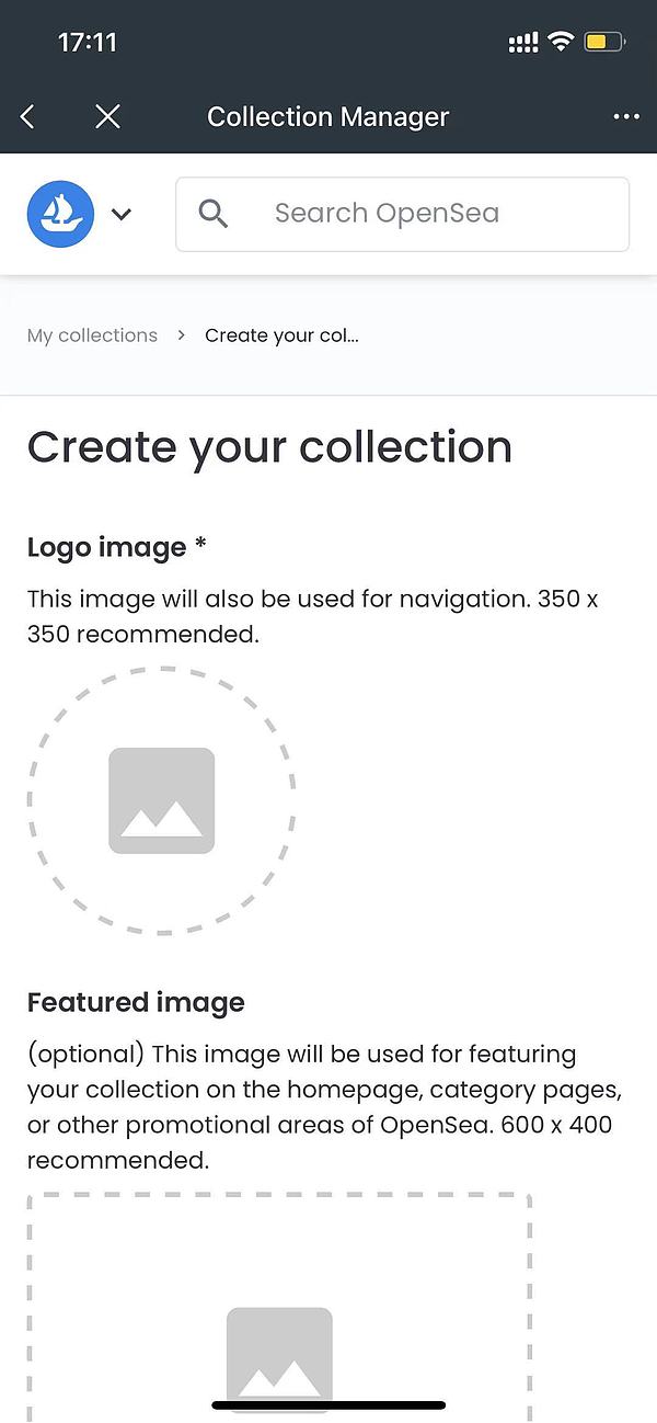 这里你就可以创建一个新的 collection 了,collection 相当于某一个系列作品的集合你需要按要求准备好一些图片作为 collection 的基础元素