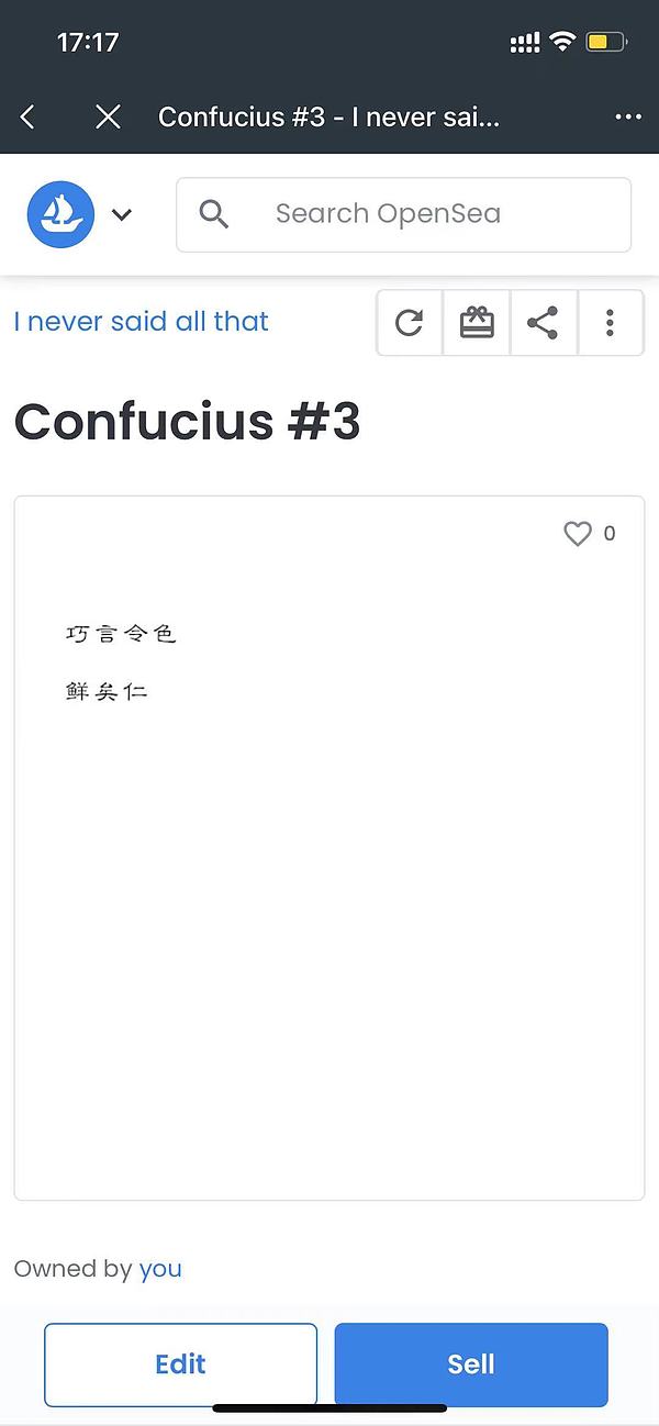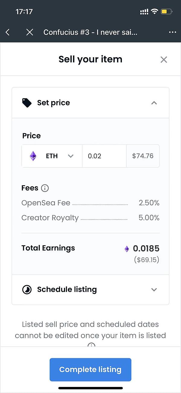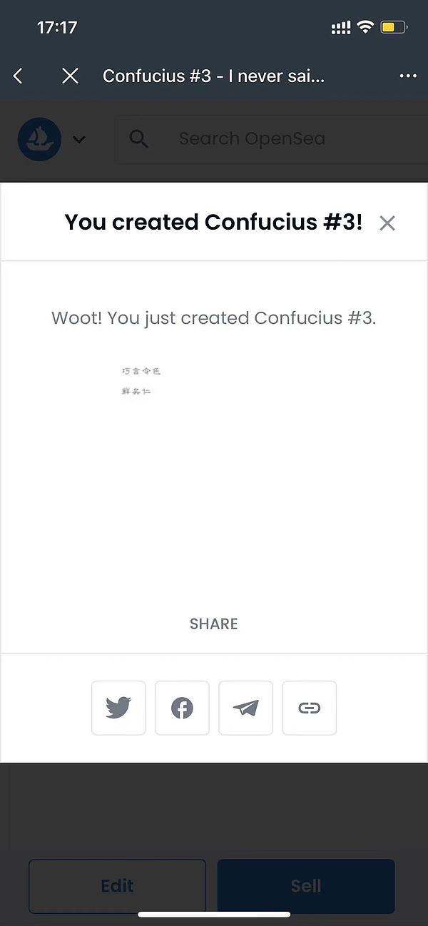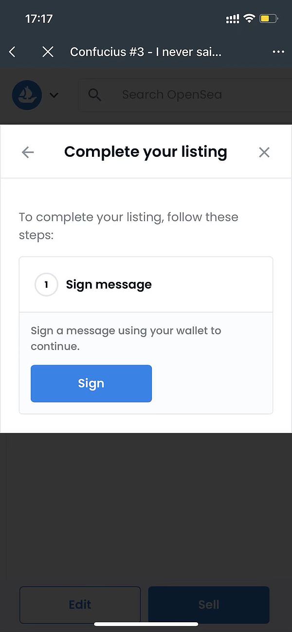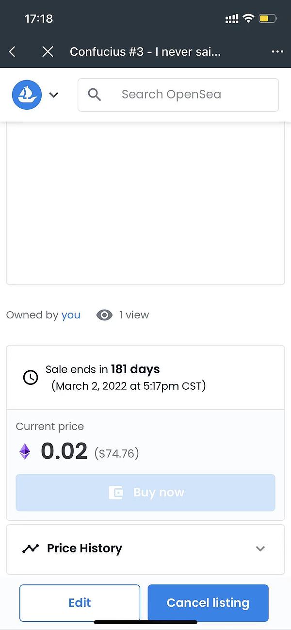 完成钱包签名后,你的这个 NFT 就已经上架销售了