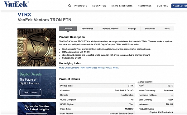 据悉,德意志证券交易所是欧盟第一大证券交易所,成立于1585年,位居全球前十大证券交易所之列,在欧洲乃至世界金融版图上占据重要位置。德意志证券交易所在2020年6月发起全球首个中心化清算的比特币ETN,为投资者提供了参与加密资产投资的便捷渠道。此次TRX首次在主流传统证券交易所挂牌交易,是全球著名基金管理公司VanEck继比特币和以太坊之后重磅推出的第三只主流加密资产ETN,从金融市场角度彰显了波场TRON走向世界,被主流国家认可,成功跻身全球三大公链的成就。