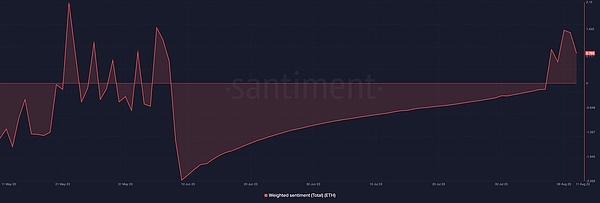 市场情绪也必须改善。根据 Santiment 的说法,过去 90 天内 ETH 的加权情绪主要为负面。
