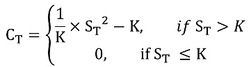 由以上公式可见,由于平方期权与普通香草期权收益计算方式不同,当市场发生大幅上涨时,看涨平方期权所带来的收益将明显大于普通看涨期权,反之亦然。