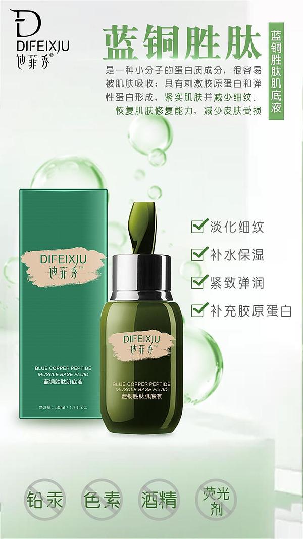 蓝铜胜肽是一种小分子的蛋白质成分,极易被皮肤吸收,具备刺激胶原蛋白和弹性蛋白形成。紧实肌肤并减少细纹,恢复肌肤的修复能力。减少肌肤受损。 淡化细纹、补水保湿、细致弹润、补充胶原蛋白,则是董娃娃女士对这款产品的高要求。