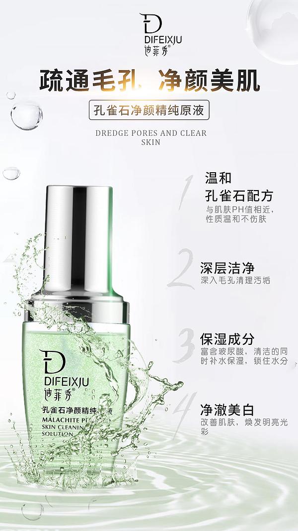 孔雀石提取液却是清除自由基的克星,它蕴含活性铜离子,能百激活谷胱甘肽还原酶的活性,从而直接捕获自由基,能够清除过氧化阴离子(身体最强毒性自由基之一),最终达到清除自由基的功效。天天使用,抗自由基的效果更佳。 深层洁净,深入毛孔清理污垢 保湿成分,富含玻尿酸,清洁补水又锁水 改善肌肤,焕发明亮光彩,从而净澈美白