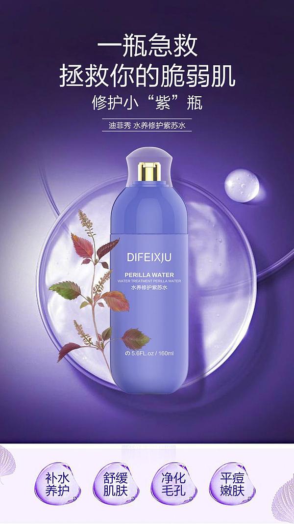 迪菲秀水养修护紫苏水-修护的小紫瓶 一瓶急救,拯救你的脆弱肌 一瓶可以满足补水修护的水 一瓶可以舒缓肌肤炎症的水 一瓶可以深层净化毛孔的水 一瓶可以抚平痘印嫩肤的水 一瓶控油实力派的水,迪菲秀的小紫瓶。