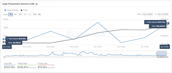 根据加密市场数据聚合商IntoTheBlock的数据,链上YFI交易量在过去一周内增长了282%,其中仅11月10日的交易额就接近1.34亿美元。